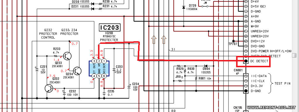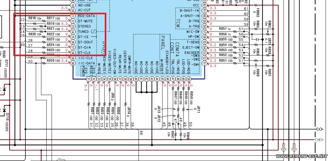 Мои познания в ремонте данного вида техники: Любитель (делаю только для себя) Наличие схемы: есть доброго времени суток изначально принесли уходит в зашиту, STK403-120 выход пробит, выпаял все равно уходит в зашиту,на ножке 3 протект микросхемы был 0.70v .я так думаю это и за отсутствуюшего stk403-120. отключил зашиту ,отрезал дорожку идушую на 3 пин перестал уходит в защиту. теперь для проверки подключаю другой наружный усилитель на вход stk403-120 и набираю поиск эфира AM FM ,а он не остановливается, частоты идут ,не ловит каналы.шлейф тюнера в порядке 9 в поступает DVD и кассетный секция не работает и не надо . подключаю wi fi модуль,но надо чтоб работал и радио. нужны советы