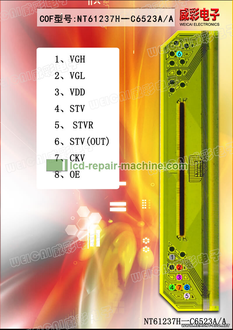 Текст сообщения: Повредил кристалл бокового среднего строчного драйвера(уха) 18NT61237H-C6523A-A.