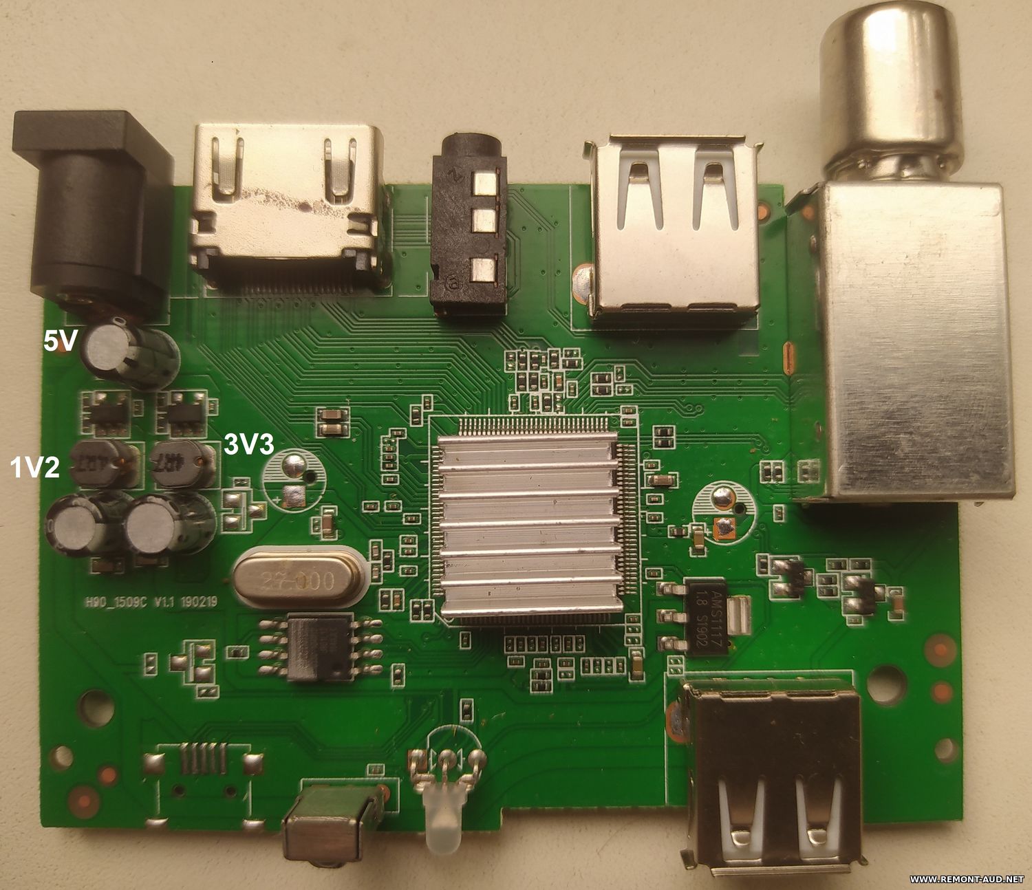 Аппарат в ремонте второй раз.В первый раз,около года назад,был заменён БП и считана прошивка.Сейчас пришёл с проблемой - "находит,но не запоминает каналы".Действительно,при включении выскакивает окно начальных настроек.Автопоиском находит все каналы и начинает трансляцию "Россия1". Но стоит переключить канал,выскакивает табличка "база данных пуста",соответственно трансляции нет.Переключение обратно на "Россию1" - тоже "база данных пуста".Список каналов также пустой. Ручным поиском находит пакет каналов,но трансляции нет. Что было сделано: 1)Проверка всех питаний 5V ; 3V3 ; 1V8 ; 1V2 осциллографом - норма,пульсаций нет. 2)Замена 25Q32 - прошита родной прошивкой - без изменений. 3)заменён кварц 27.000 МГц - без изменений. 4)Пробовал прошивки с файлообменника одна и вторая,а также прошивку с сайта производителя.Сейчас стоит моя же прошивка,но от DENN DDT111 С ними немного другая ситуация - не получается сделать сброс на заводские установки,чтобы удалить ранее настроенные каналы.Вернее сброс делается,но ничего не меняется.В списке каналов присутствует 2 мультиплекса,но на других частотах.В остальном - без изменений,автопоиском удаётся включить "Россию1" до первого переключения или отключения приставки.Причём кнопка "INFO" показывает,что вещание идёт по 43 каналу(650 МГц),а у меня 1-й мультиплекс это 30 канал(546 МГц). Даже если настроить приставку без антенны,то в списке каналов есть 2 мультиплекса,но на других частотах,соответственно приёма нет.