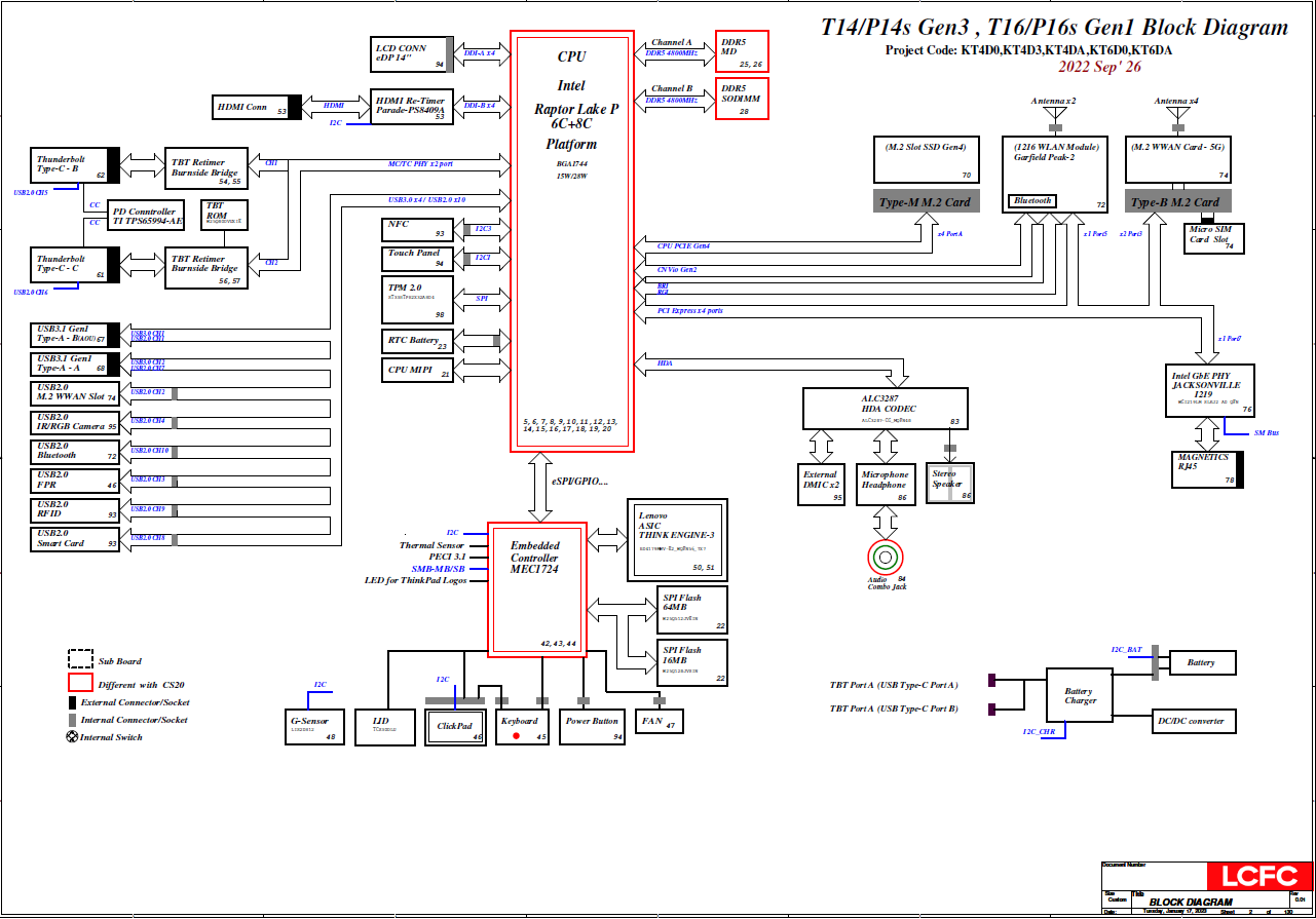 Схема Compal (LCFC) NM-E441 JT4C1/JT6C1/JP6C1 AMD FP7 REV 0.1 - Lenovo ThinkPad T14 T16