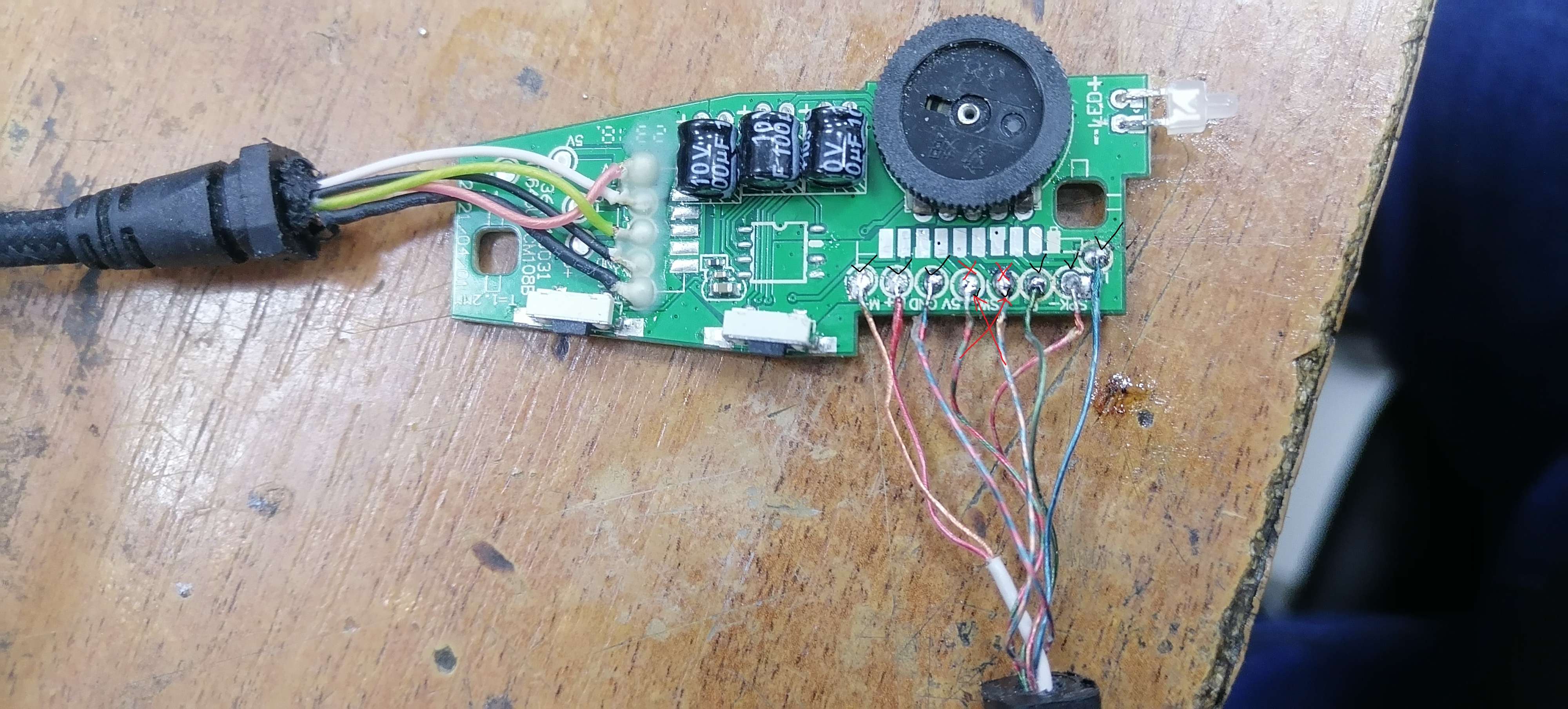 В ремонте наушники ardor gaming paradise, у наушников выдрали шнур от головной части к блоку управления ими. Поиски в сети меня к решению проблемы не привели. Путем "научного тыка" решил задачку куда какой проводок припаять. Смотрите картинки куда что припаять.