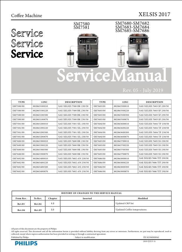 Service manual кофемашина PHILIPS Xelsis-2017 .