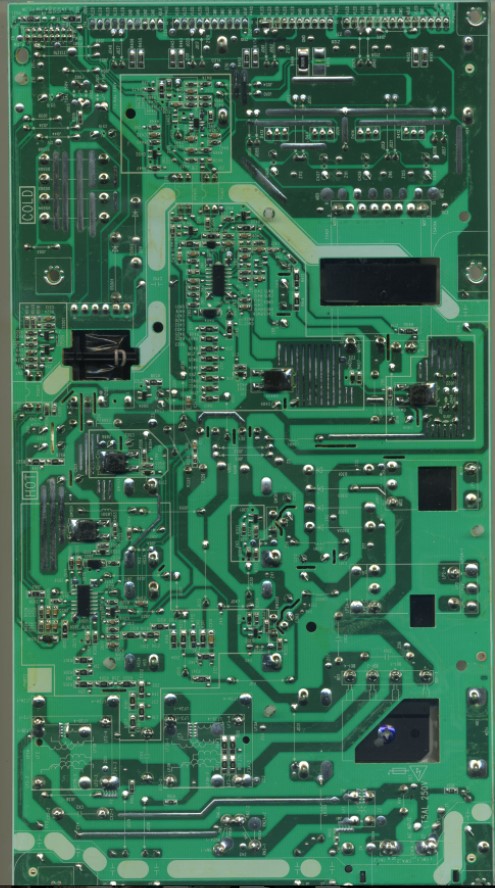 Скан платы в высоком разрешении 1200DPI Платформа - 40-P30AAL-PWD1ZG ТВ - TCL 55C6K Шим в горячей части tea8918 Попалась плата с разорванной мелочёвкой, может кому нужно для ремонта