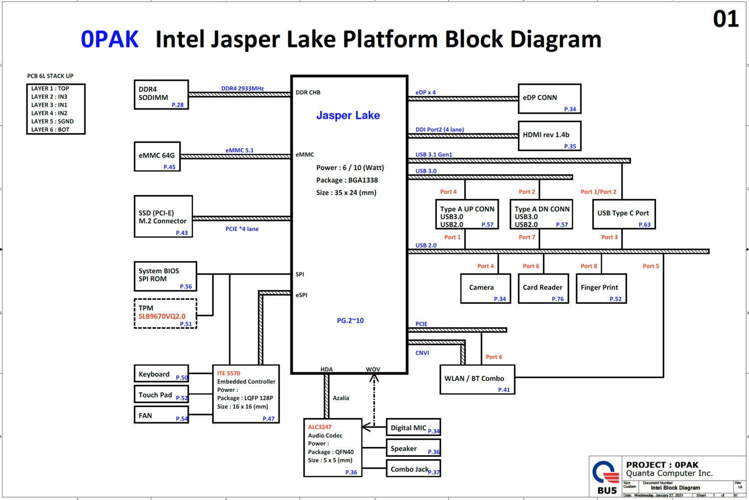 Quanta 0PAK DA0PAKMB6F0 JSL REV A1 - HP 14-S Series