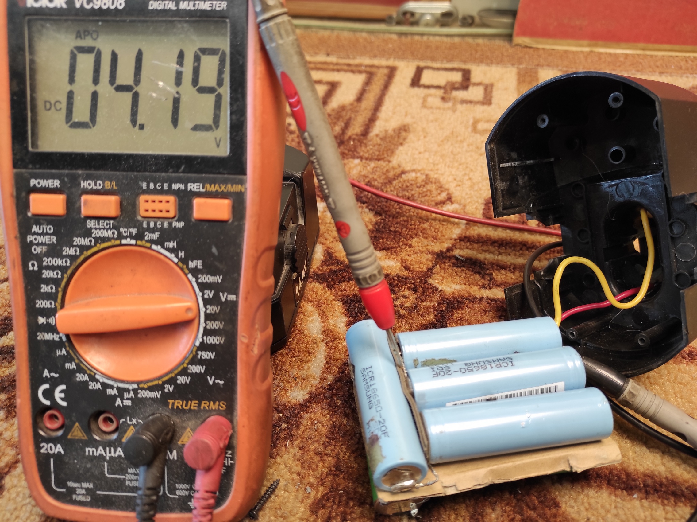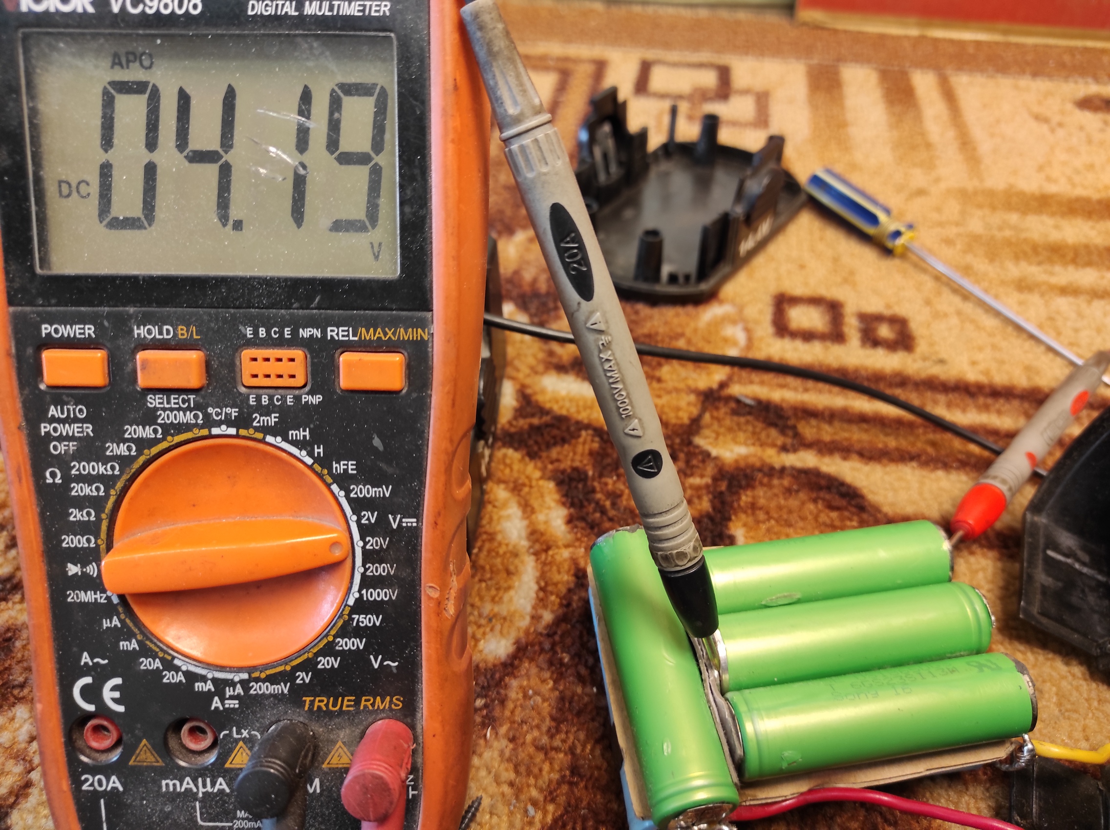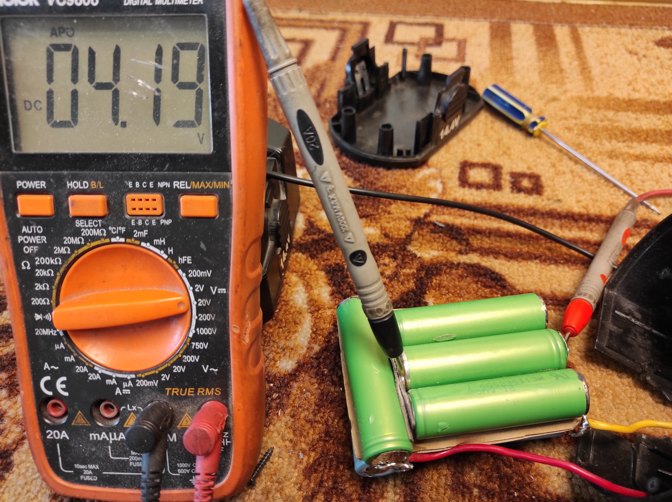 Пять лет тому назад поменял аккумуляторы (никель кадмиевые на литий ионные) в шуруповерте,работают без проблем.Из более 40 штук отобрал 16.Процесс отбора:отсутствие нагрева при зарядке и удержание заряда на автомобильной лампочке (в моём случае 24 вольта 100 ватт) в течении 2х минут падение напряжения с 4,2 вольт не ниже 3,5 вольт.Заряжаю оригинальным зарядным от шуруповерта. .