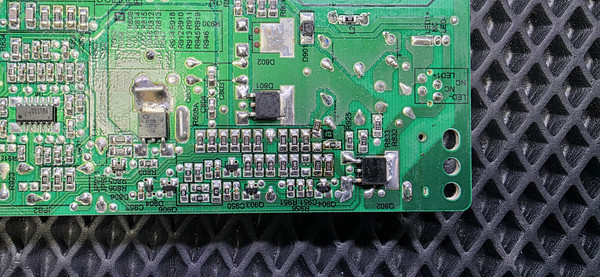 Всем добра! Попался ТВ Grundig 50GFU7800b стояла задача уменьшить ток подсветки PSU - pw.98w2.623 Система подсветки построена на шиме ob33510cp Для уменьшения тока убираем один резистор По дефолту ток 510ма, после доработки будет 320ма, по картинке не заметно