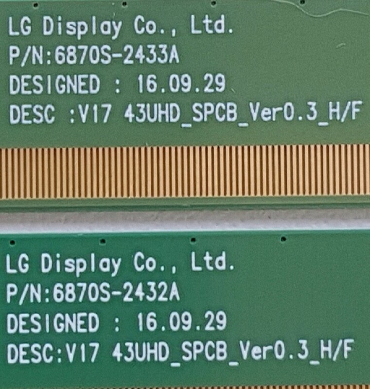 матрица 43" 4K UHD RGB-W номера на планках 6870S-2433A / 6870S-2432A LC430DGJ-SKA4 LC430DGJ (SK)(A4) применение матрица LG 43UJ630V матрица LG 43UJ631V матрица LG 43UJ634V матрица LG 43UJ639V маркировка HC430DGG-SLTL3 HC430DGG-SLTL2 HC430DGG-SLTL1 HC430DGG-SLTL2-9141 HC430DGG-SLTL2-9131 HC430DGG-SLTL2-9111 HC430DGG-SLTL3-2111 партномера EAJ63932801 EAJ63934401 EAJ63931901 самовывоз- г Москва 89251552999 Василий могу заменить
