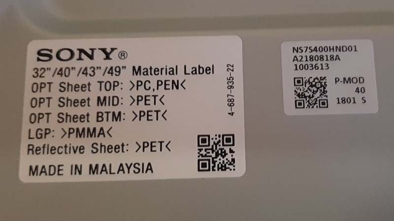 матрица 40" для SONY маркировка NS7S400HND01 LSY400HN02-A02 планка матрицы 17Y S40HF11AMA4S4LV0.3 матрица SONY KDL-40RE453 - матрица в корпусе с подсветкой и рамкой готовый в сборе экран LCD-модуль оригинал поставщик Sony самовывоз-Москва 89251552999 Василий могу заменить отправка в регион возможна